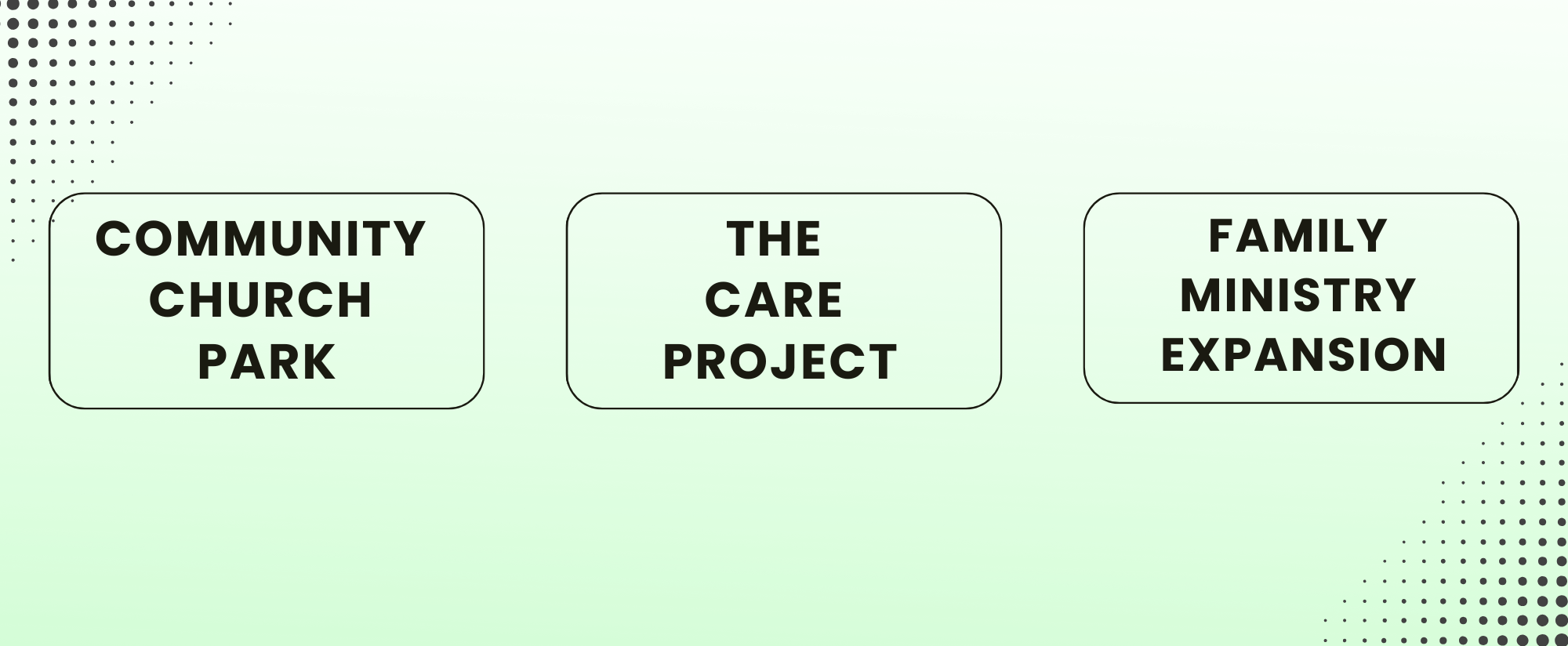 God often speaks peace through creation. Phase Two of The Community Church Park will construct a large play area and relocate the playground to this area of the park.